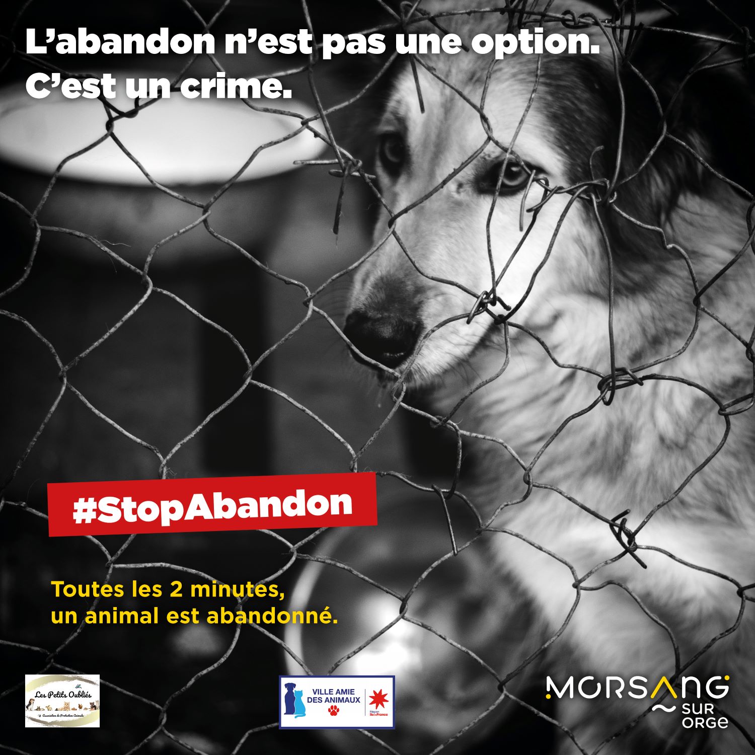 À l’occasion de la journée mondiale contre l’abandon des animaux de compagnie, la Ville de Morsang-sur-Orge, labellisée Ville amie des animaux par la Région Île-de-France, la Ville s’associe activement à la campagne nationale #StopAbandon, en collaboration avec l’association « Les Petits Oubliés », et réaffirme son engagement en faveur de la protection animale.