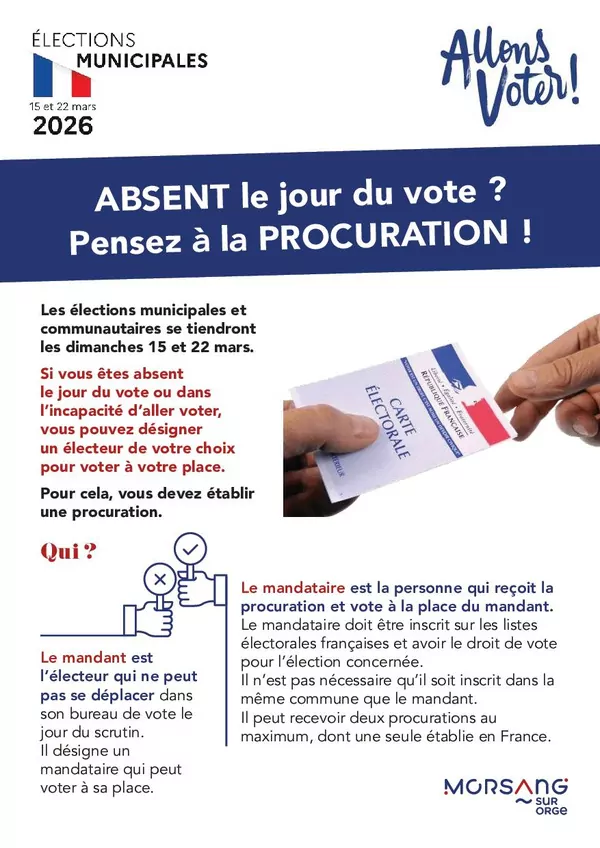 Où voter pour les élections municipales 2026 à Morsang-sur-Orge ? Retrouvez votre bureau de vote pour les dimanches 15 et 22 mars 2026.